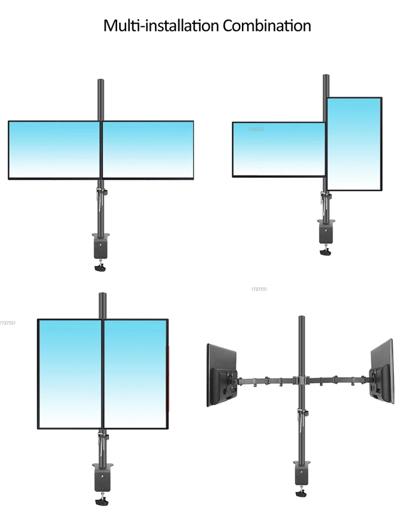 Comprar Soporte de Monitor Dual de acero para escritorio, base de abrazadera de movimiento completo, brazo de montaje de 12kg, rotación de 360 grados, 10-27 pulgadas, lado a lado, T902-280