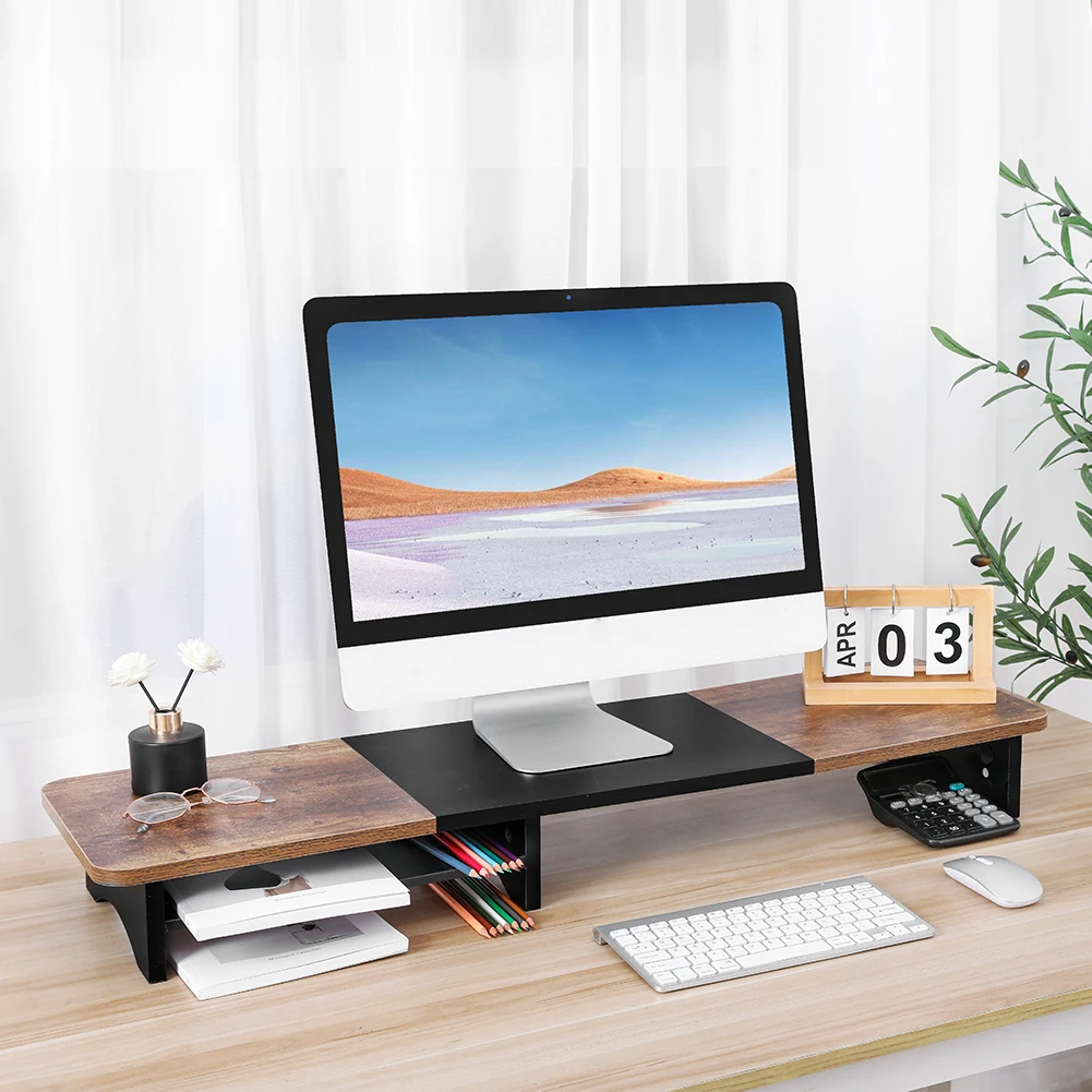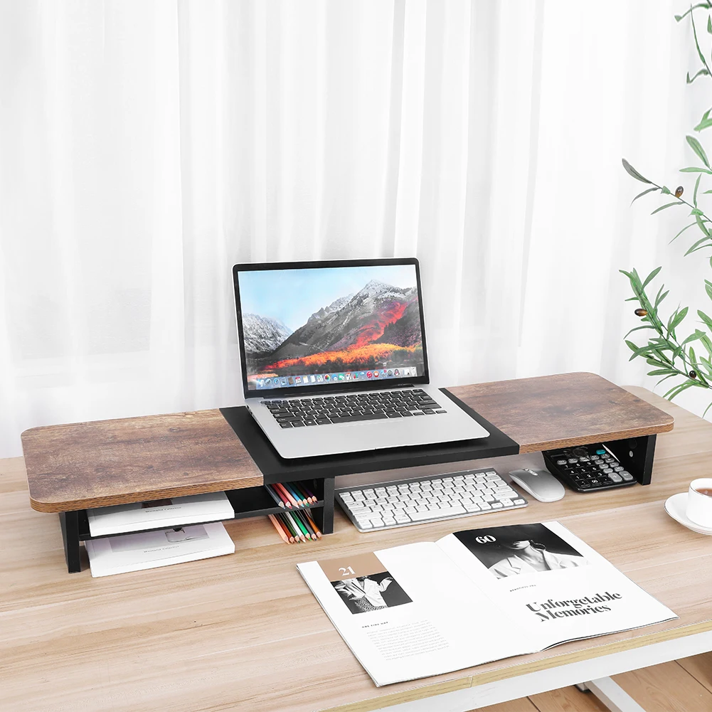 Comprar Soporte de Monitor Dual con almacenamiento, soporte elevador de 2 monitores, soporte multiusos para Monitor de ordenador, portátil, impresora, TV