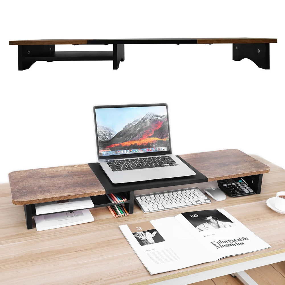 Comprar Soporte de Monitor Dual con almacenamiento, soporte elevador de 2 monitores, soporte multiusos para Monitor de ordenador, portátil, impresora, TV