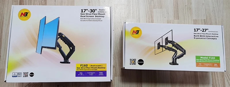 Comprar Soporte de Monitor Dual NB F160, brazo de escritorio con resorte de Gas de 17-27 pulgadas, con 2 USB3.0, soporte de montaje de Monitor, carga de 2-9 kg cada brazo, nuevo