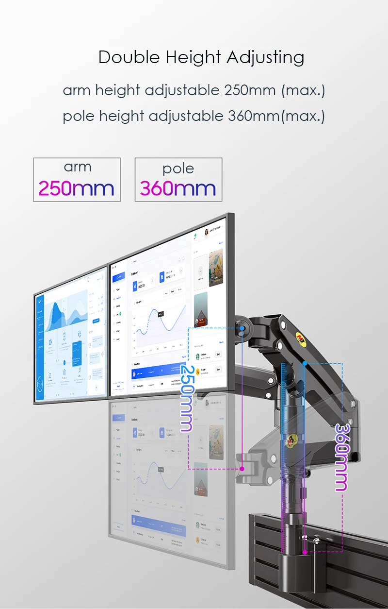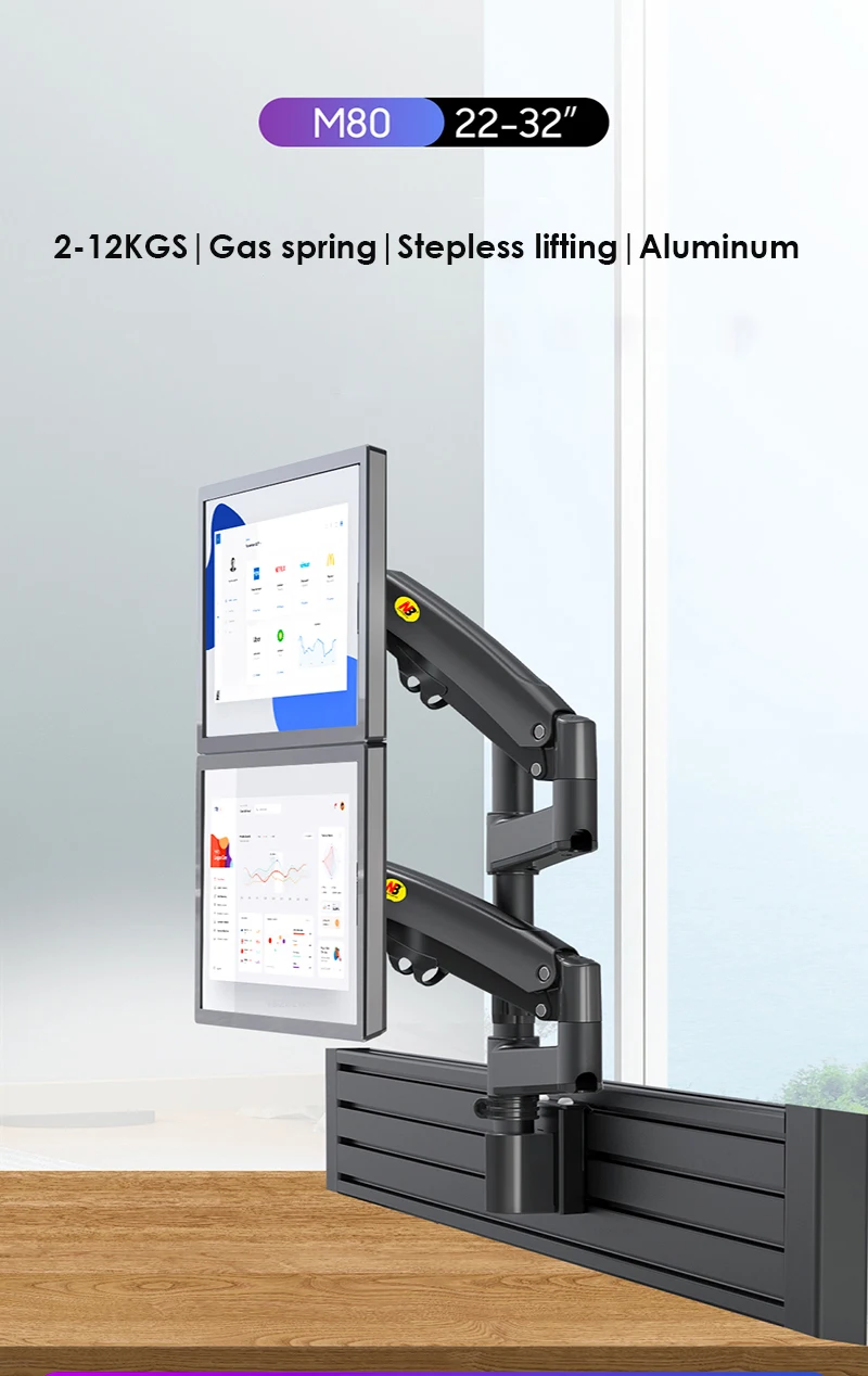 Comprar Soporte de Monitor Dual NB M80, montaje ergonómico de 22-32 "con ranura para pantalla LCD LED, carga de 2-12kg cada brazo