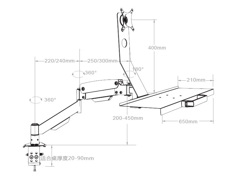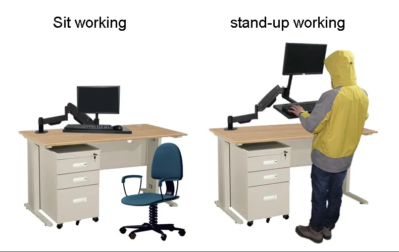 Mesa de trabajo de doble uso con resorte de Gas de elevación gratuita, soporte PS para estación de trabajo, soporte para teclado de Monitor de movimiento completo