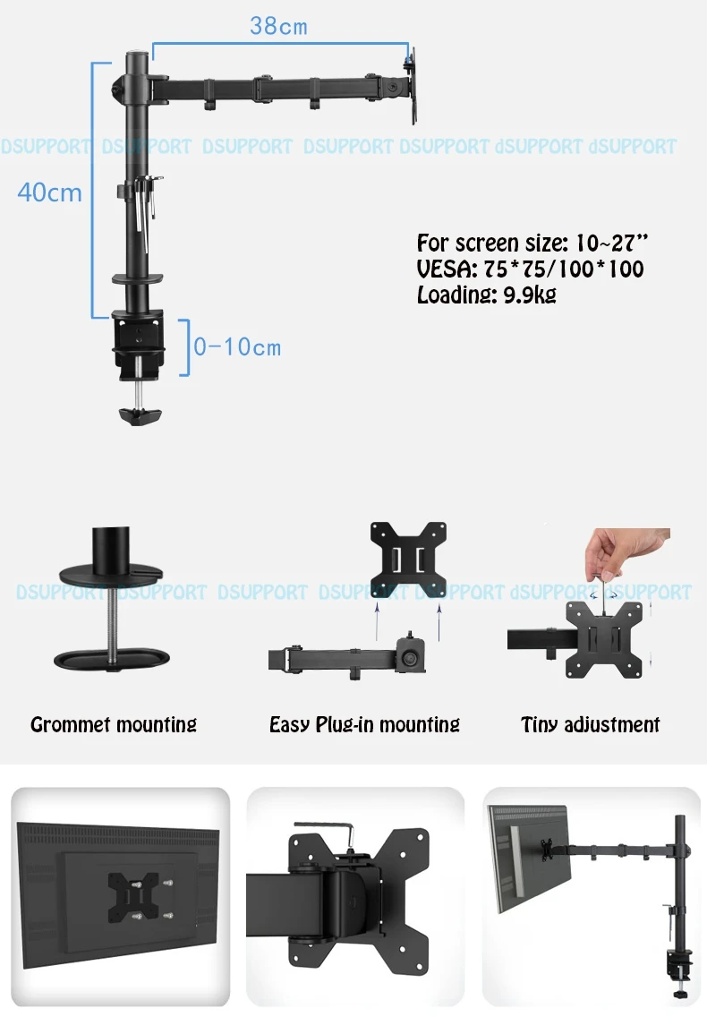 Sujeción de escritorio de movimiento completo/ojal soporte de Monitor de 10 "-27" brazo de soporte de montaje libre exhibición giratorio de elevación carga de Rack 9.9kgs