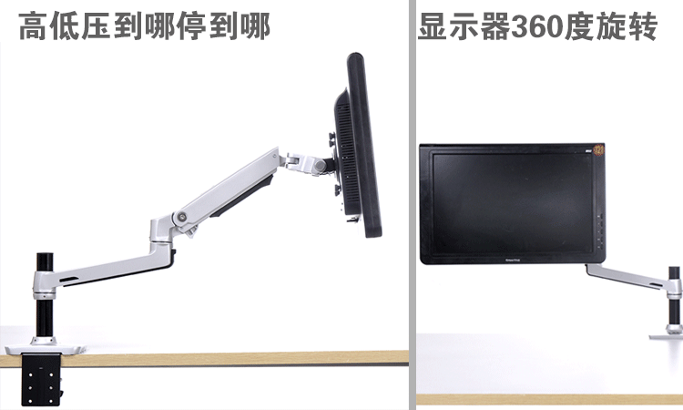 El monitor puede detenerse en cualquier ángel con resorte mecánico.