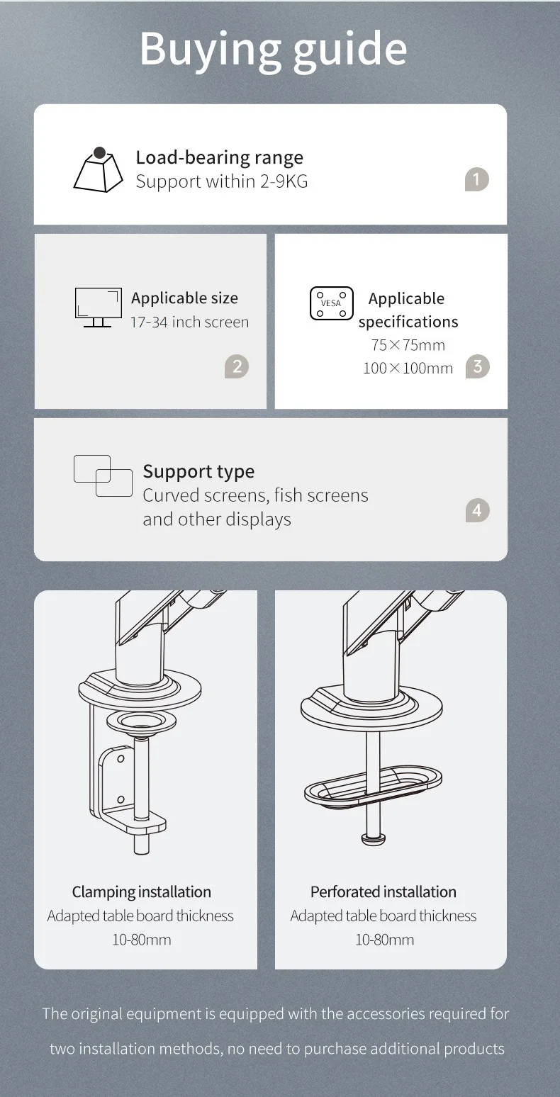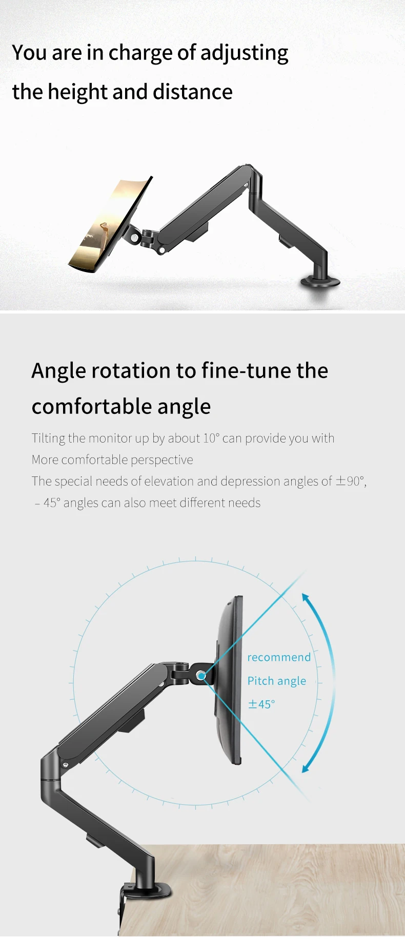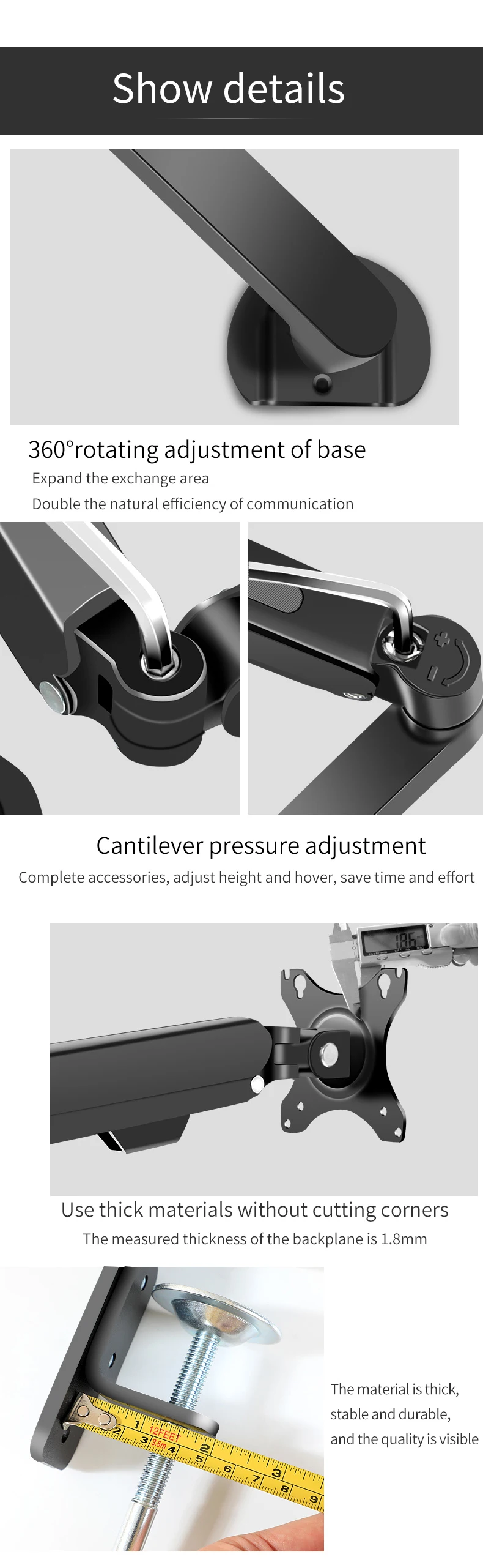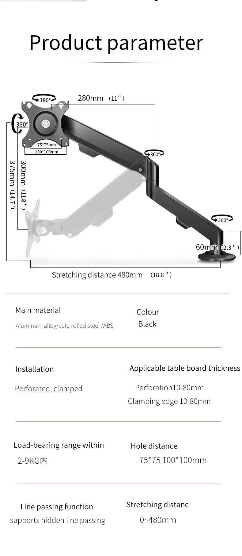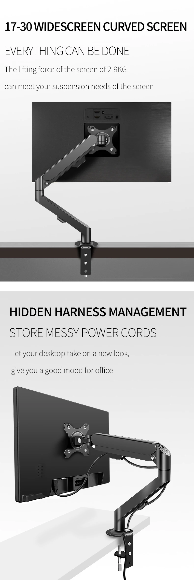 Resorte de Gas para escritorio, soporte para Monitor LED LCD de 17-34 ", carga de 2-9kg de brazo articulado, soporte para Monitor de movimiento completo, soporte para PC【Introducción del producto】Puerto