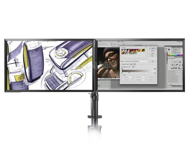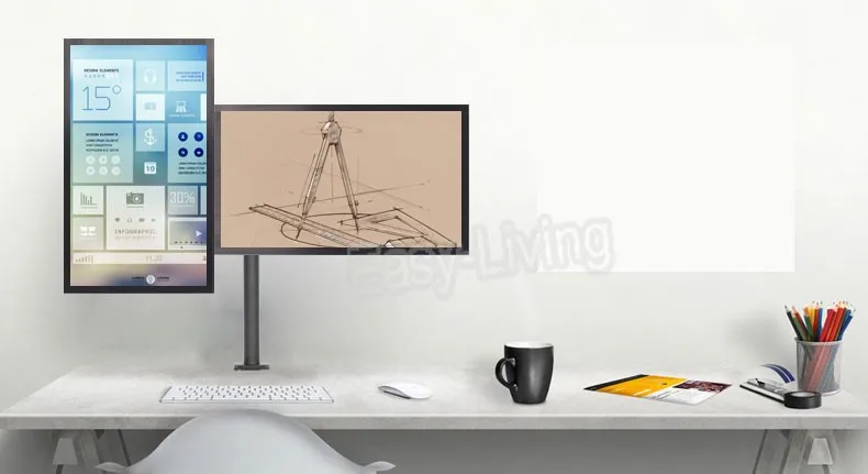 Montaje de movimiento completo: los monitores se inclinan, giran y giran fácilmente