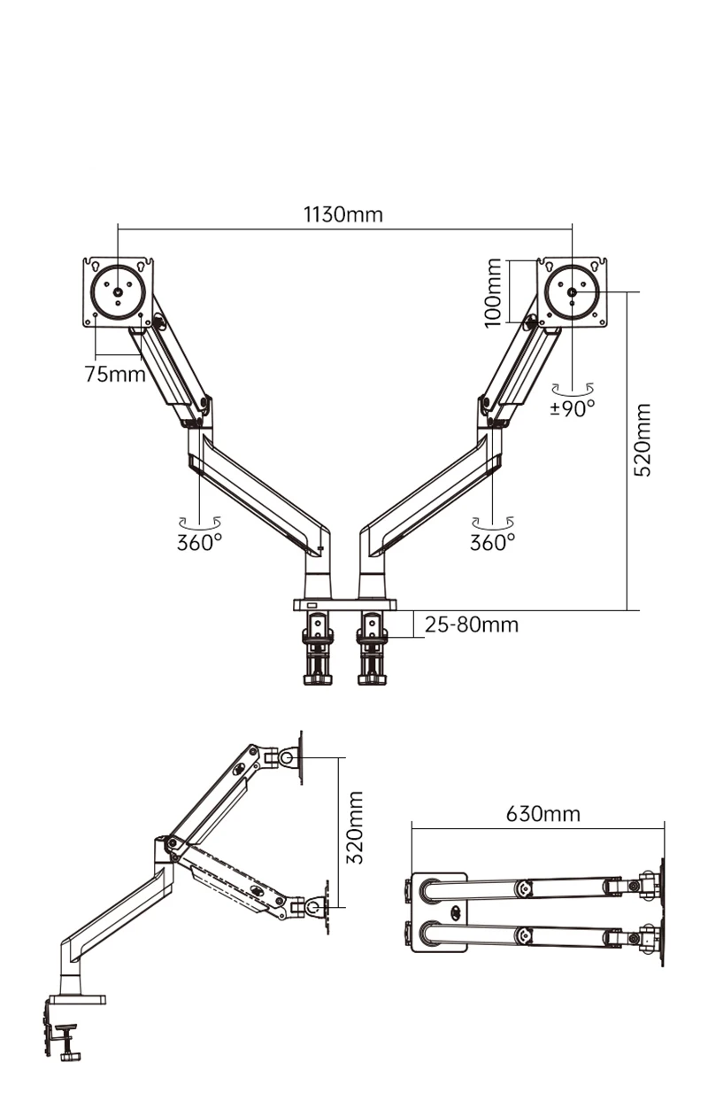 * Flexibilidad de movimientos completos con un ajuste direccional sin esfuerzo sin necesidad de utilizar herramientas.