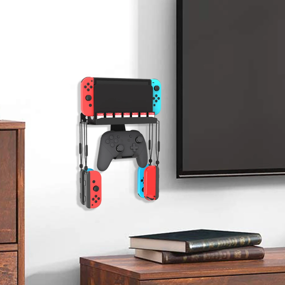 Comprar Soporte de montaje en pared de Metal para NS2 Oled, con gancho y 7 ranuras para tarjetas, Kit de Base de estante organizador, soporte de almacenamiento para Host, accesorios de juego