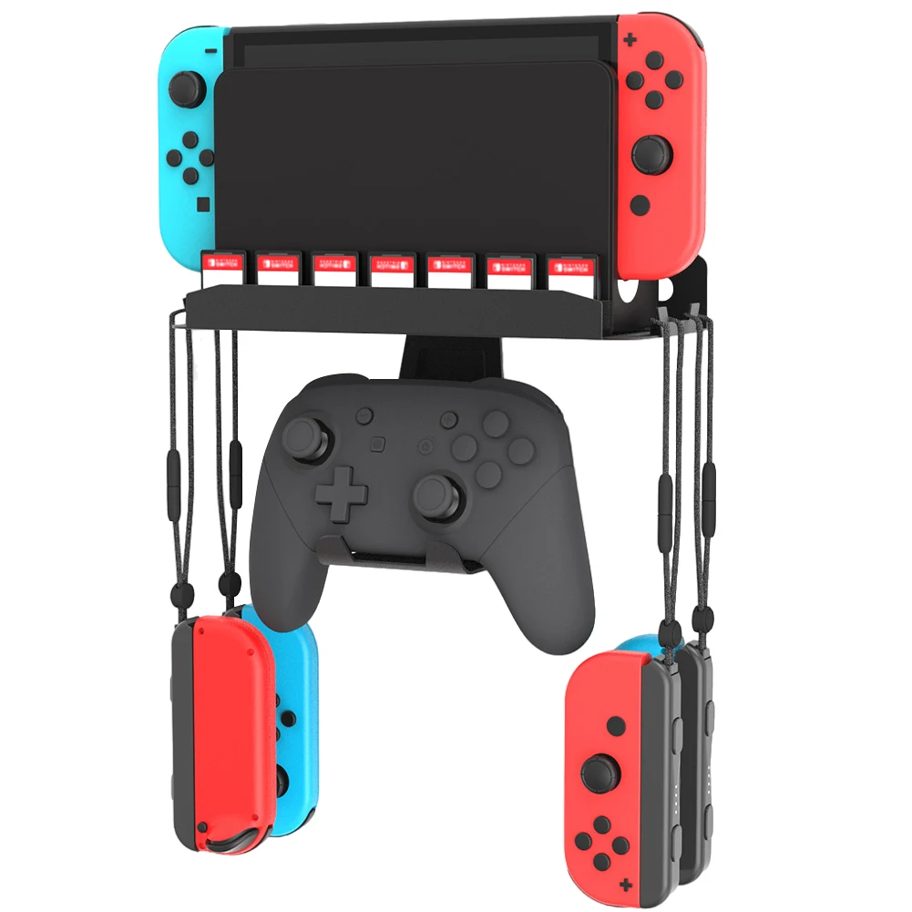 Para NS2 Oled soporte de montaje en pared de Metal con gancho y 7 ranuras para tarjetas soporte de consola soporte de almacenamiento de host accesorios de juego