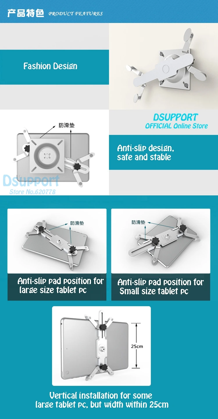 Comprar Soporte de montaje en pared para tableta 2 en 1, soporte de pantalla de aleación de aluminio, soporte Universal para tabletas de 8-12 pulgadas y teléfono inteligente de más de 3,5 pulgadas