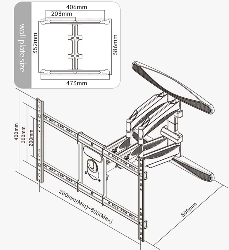 Comprar Soporte de montaje en pared para tv LCD, cubierta de cable retráctil universal NB P65, 6 brazos, 68,2 kg, 55 "-85", 70 ", 600x400, 400x400