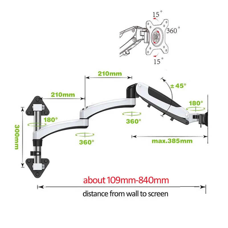 Carga: 5-10kgs(Tenga en cuenta que el peso de la pantalla debe estar dentro de 5-10kg, o el resorte de gas no funcionará)