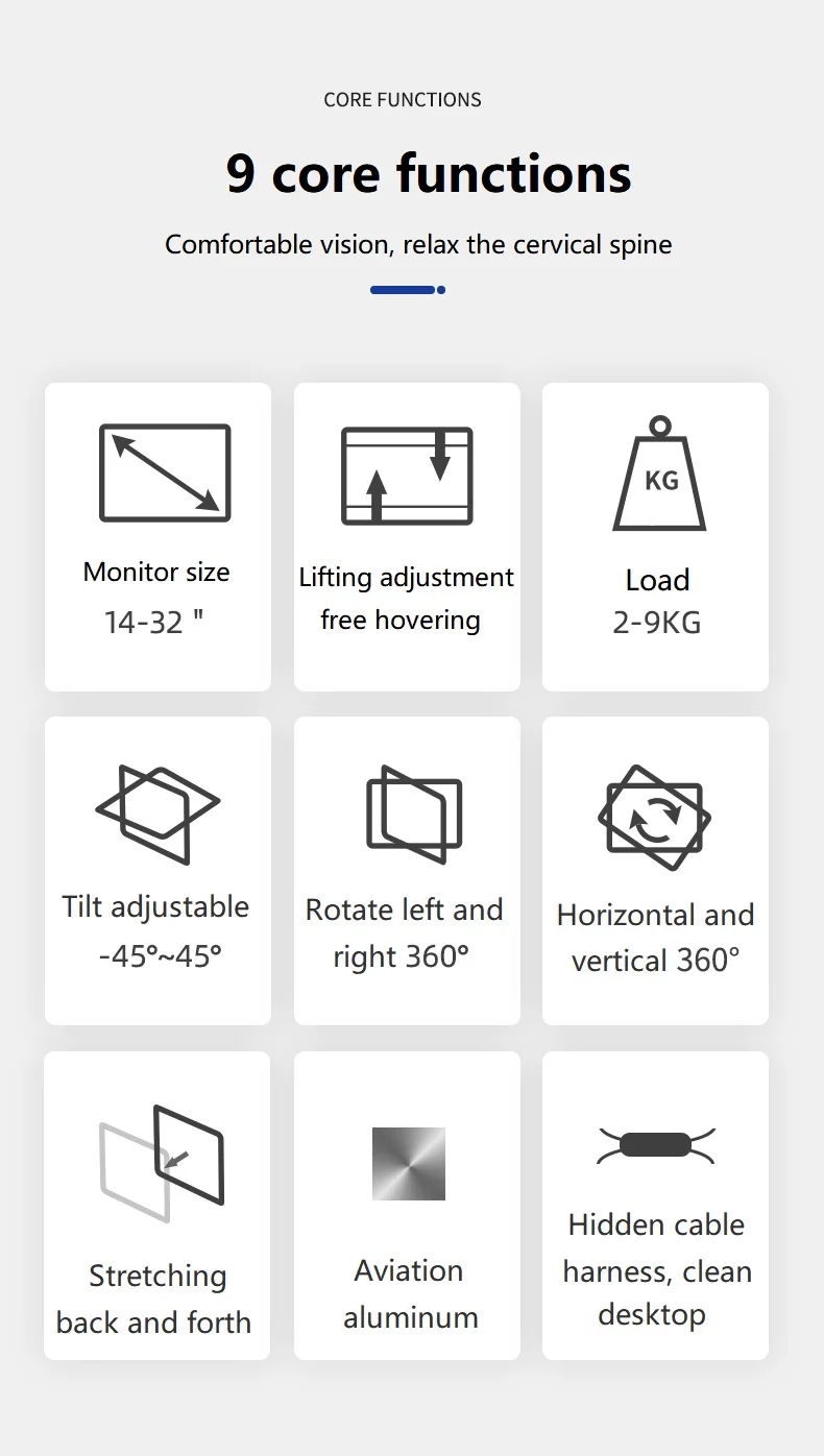 ● Capacidad de carga: 2,0-9kg/pantalla (4,4-19,8 lbs)