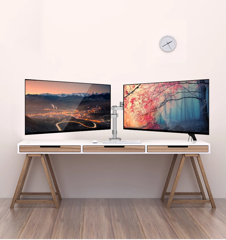 Comprar Soporte de montaje de escritorio de Monitor Dual para pantallas LCD de 14 a 32 pulgadas, rotación e inclinación, soporte de escritorio de TV de dos brazos ajustable, soporte de PC H11