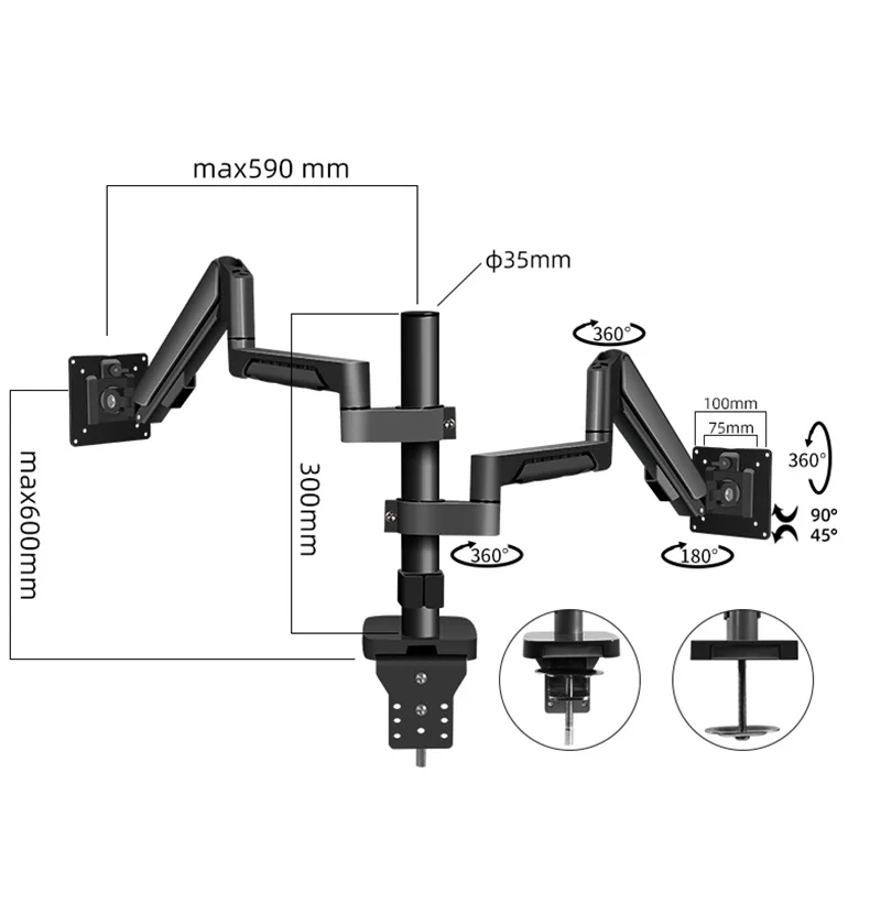Soporte de montaje de escritorio de monitor dual para pantallas LCD de 14 a 32 pulgadas Rotación e inclinación Soporte de escritorio de TV de dos brazos ajustable PC H11