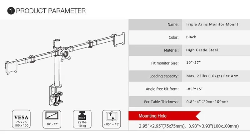 Nombre del producto: Soporte para monitor LCD triple de escritorio