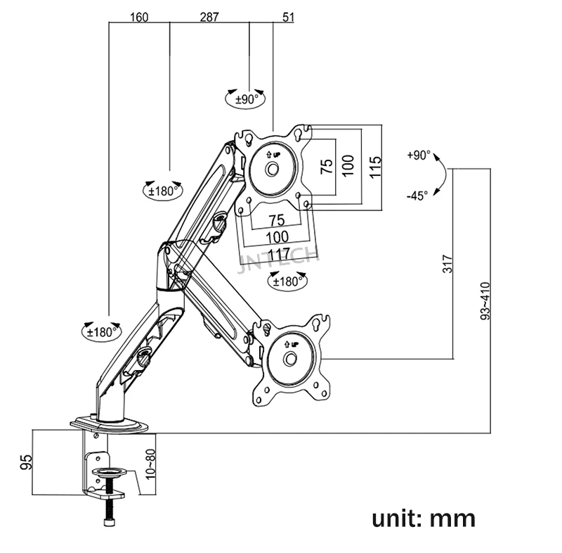 ■ Ángulo de inclinación de la cabeza +90° a -45°