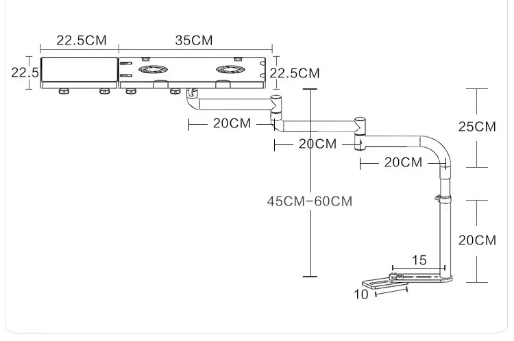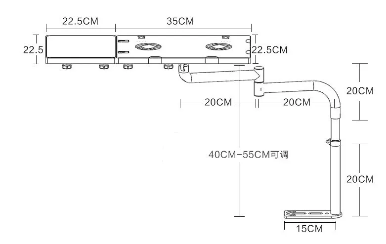 Inclinación del soporte del portátil: -85 ° ~ + 20 °; giratorio: -45 ° ~ + 45 °; rotación: 360 °