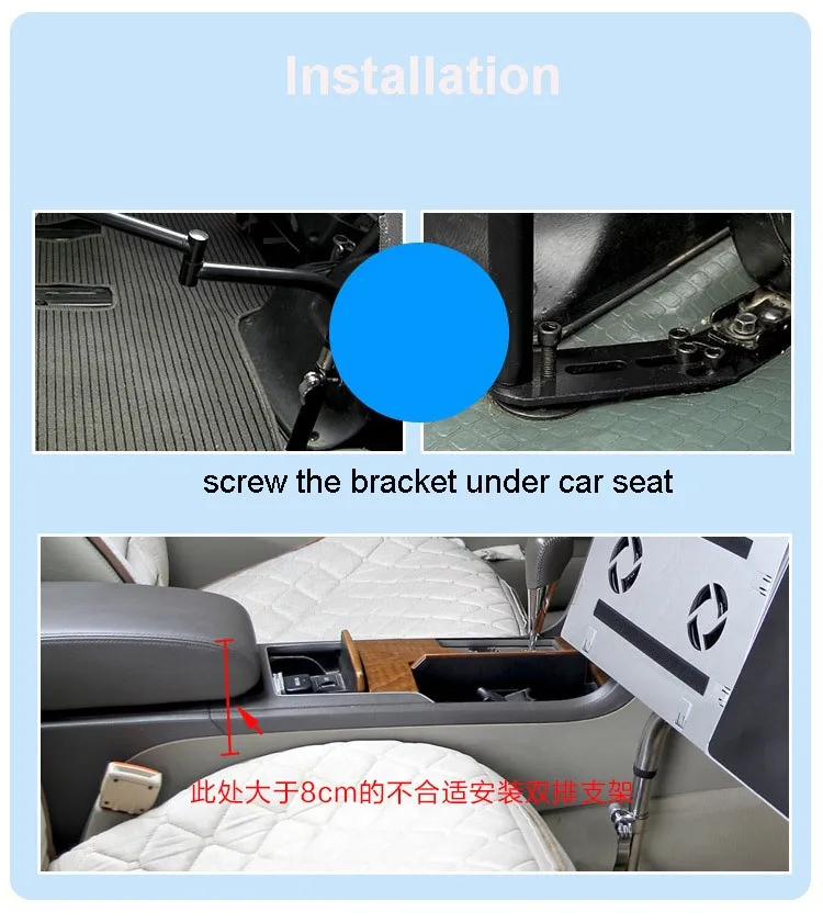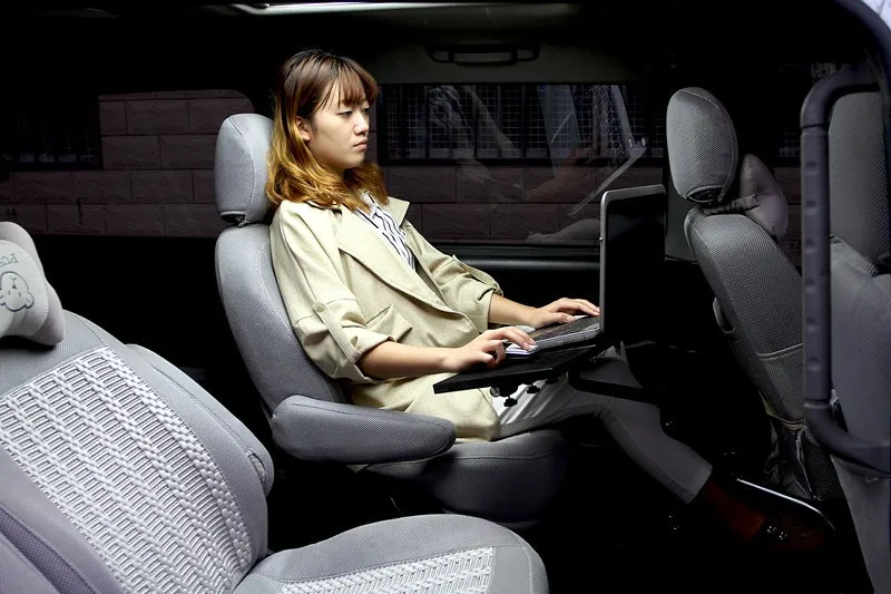Soporte para ordenador portátil de coche con rotación de 360 grados de movimiento completo, mesa de comedor para coche, tablero de escritura, mesa de PC, mesa de tableta con ventilador USB