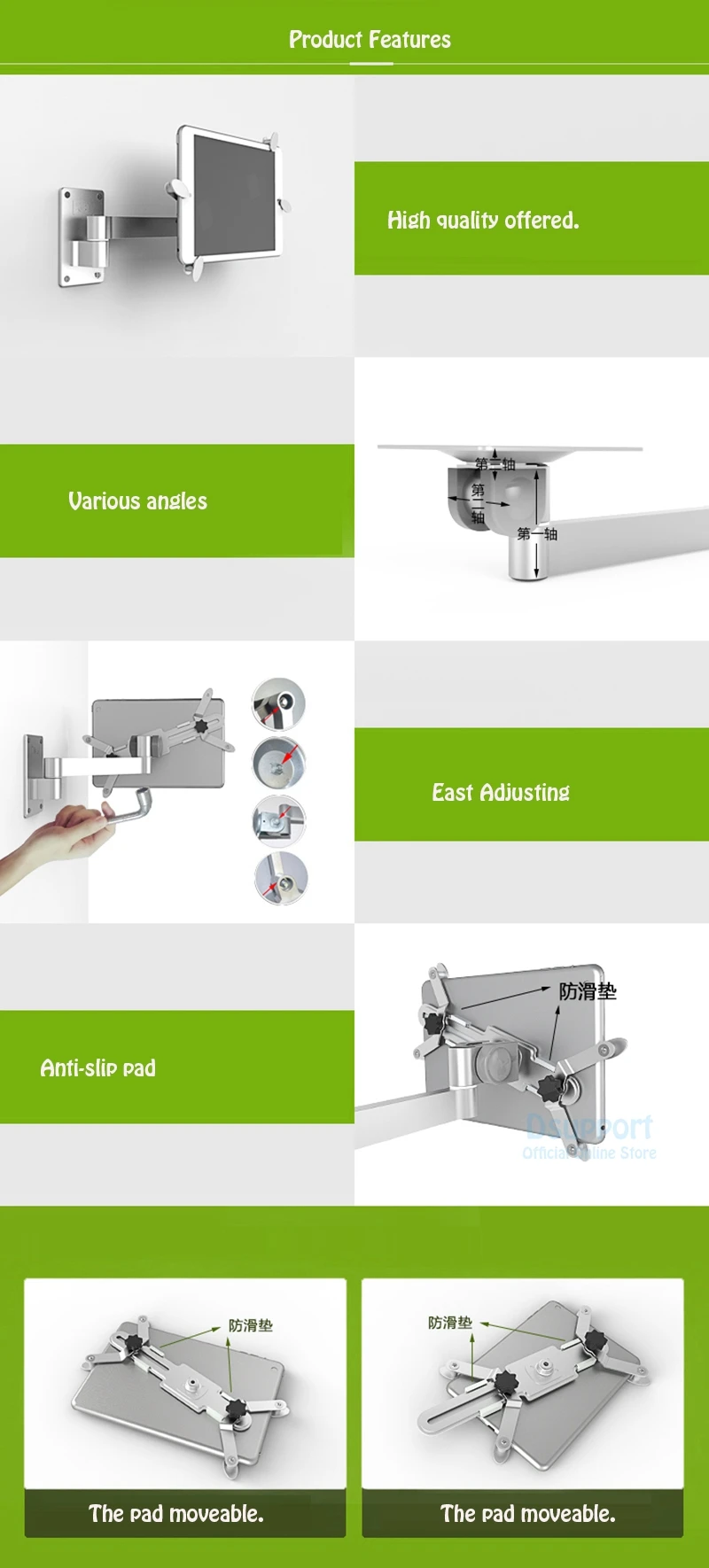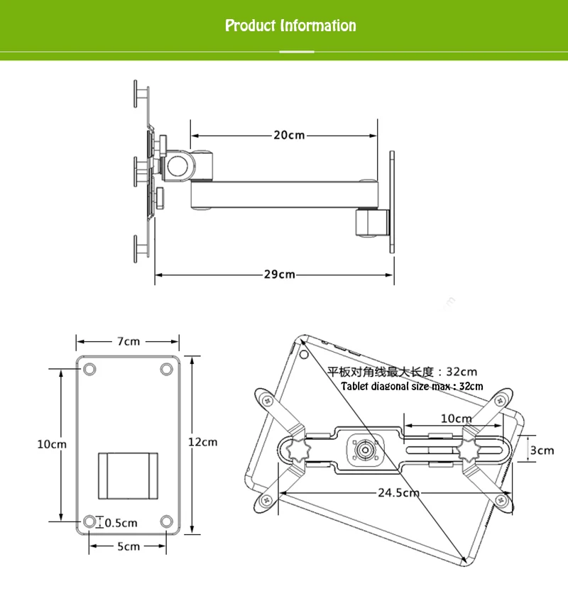 Tablet Wall Mount Stand Aluminum Alloy Screen 360 Rotation Holder Universal 3.5-12 inch Tablets and smart phone.