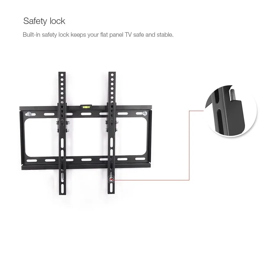 -- El bloqueo de tornillo de seguridad incorporado mantiene su televisor de pantalla plana seguro y estable.