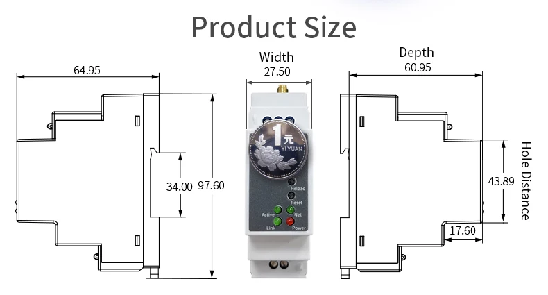 Tamaño: 102,03 x 64,95 x 27,50 mm (largo x ancho x alto), instalación en riel C45