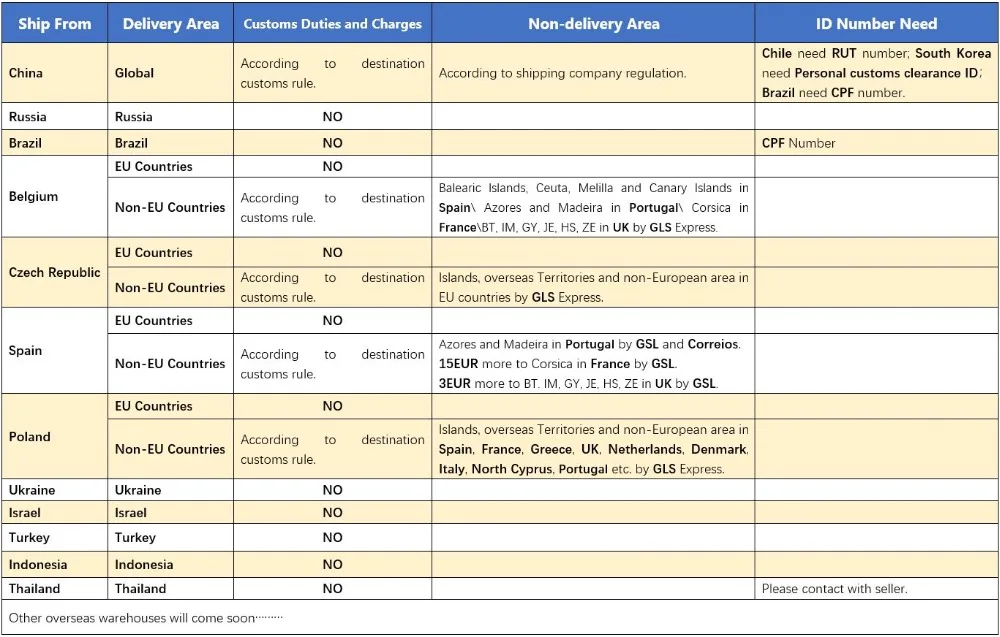 1.¡Todos los costos de envío mostrados en Aliexpress no incluyen el recargo por área extendida!