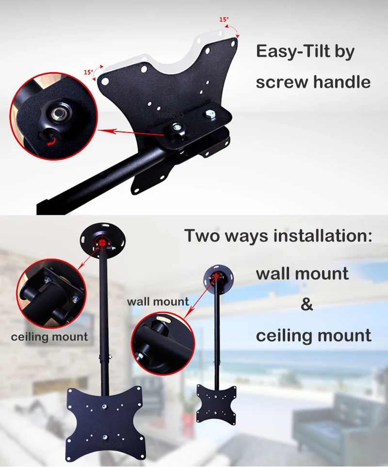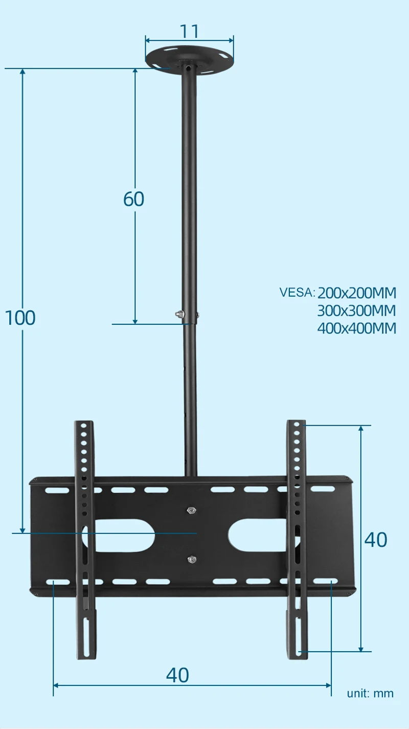 Comprar Soporte de montaje para TV en techo, 360 grados, 60-2000mm, altura ajustable, 37 "- 50", soporte para Monitor LCD LED máx. VESA 400X400mm Carga 25kgs