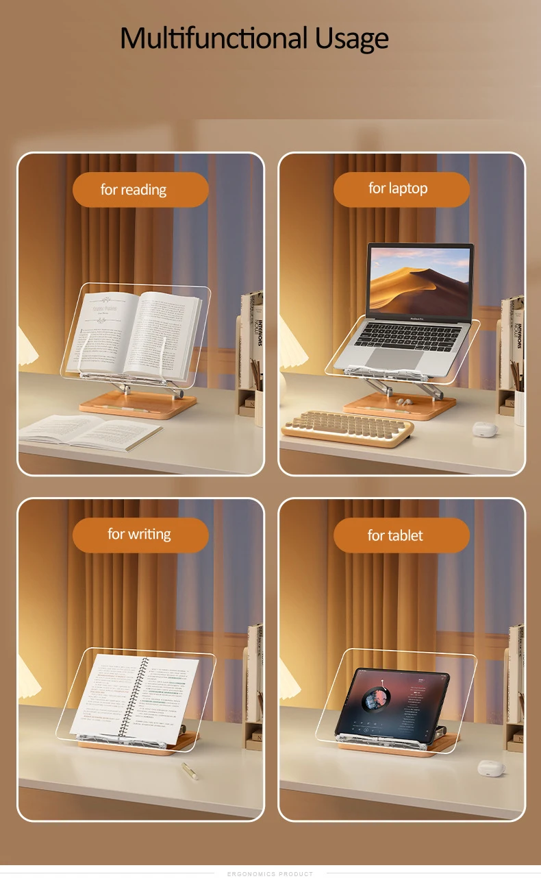 Comprar Soporte multifunción de aluminio acrílico para tableta, soporte de escritorio para portátil, ángulo de ajuste de altura, clip de lectura de libros portátil, estante de soporte, BG-4B