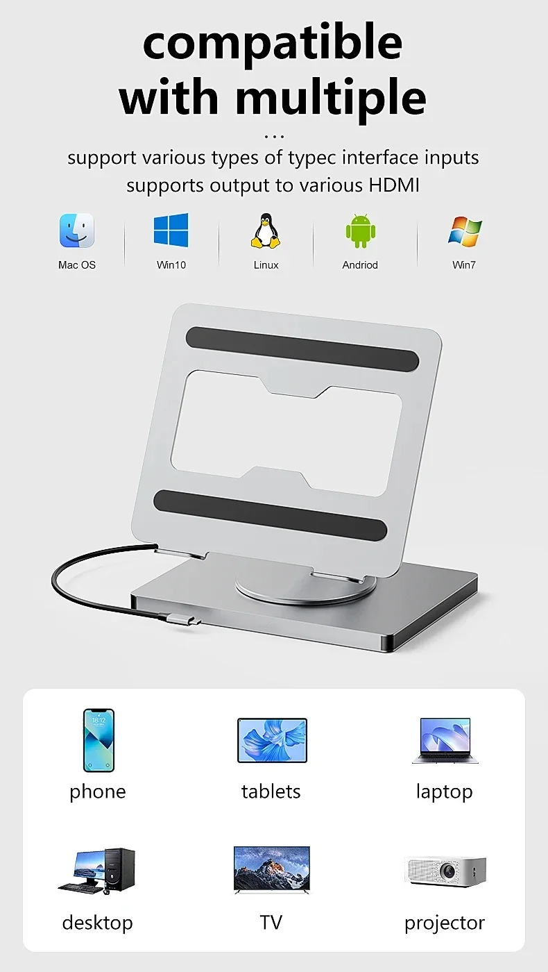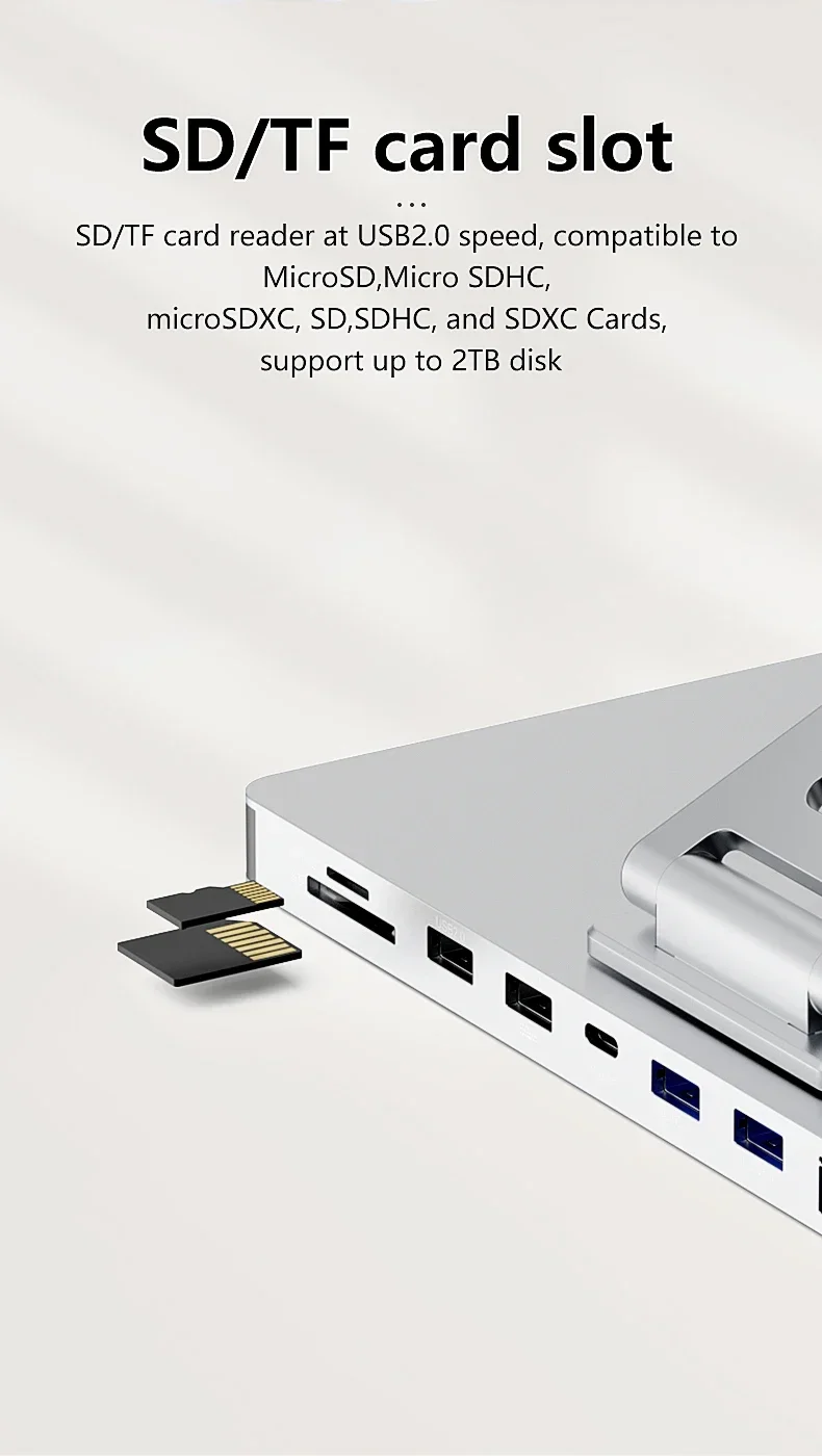 Soporte multifuncional para ordenador portátil para MacBook Pro Air, Dell HP, superficie, concentrador USB, lector de tarjetas, soporte Universal RJ45