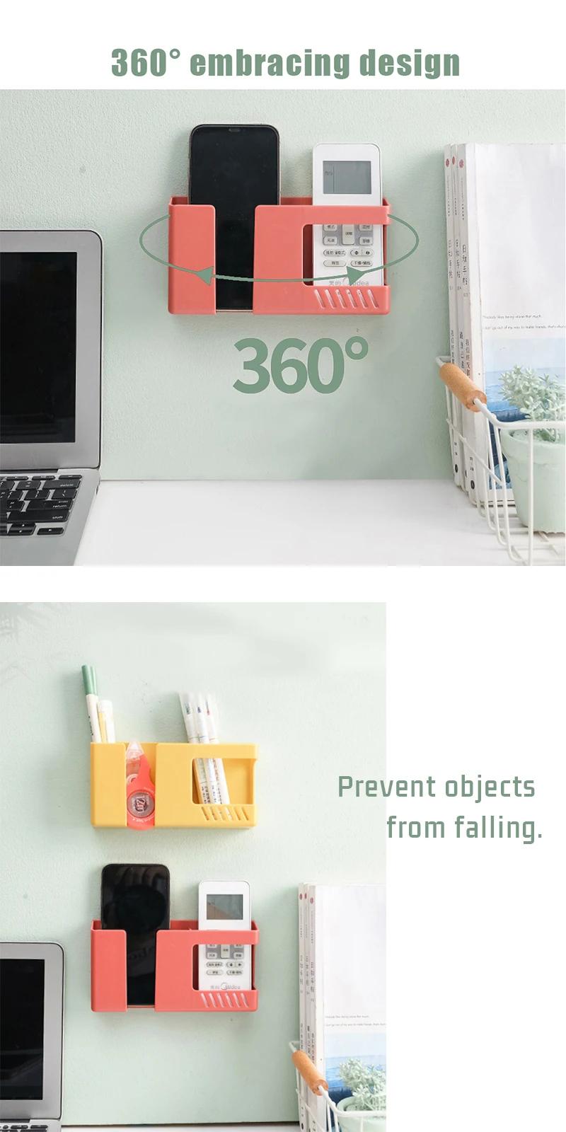 El diseño de 360 ° que abarca evita caídas cuando se coloca; el extremo frontal del soporte está rodeado por todos los lados para garantizar que el control remoto no se caiga.
