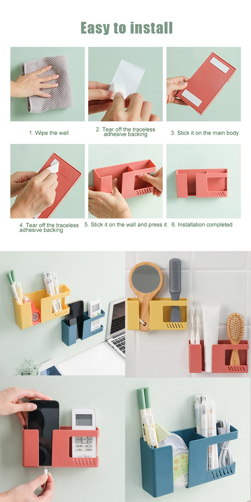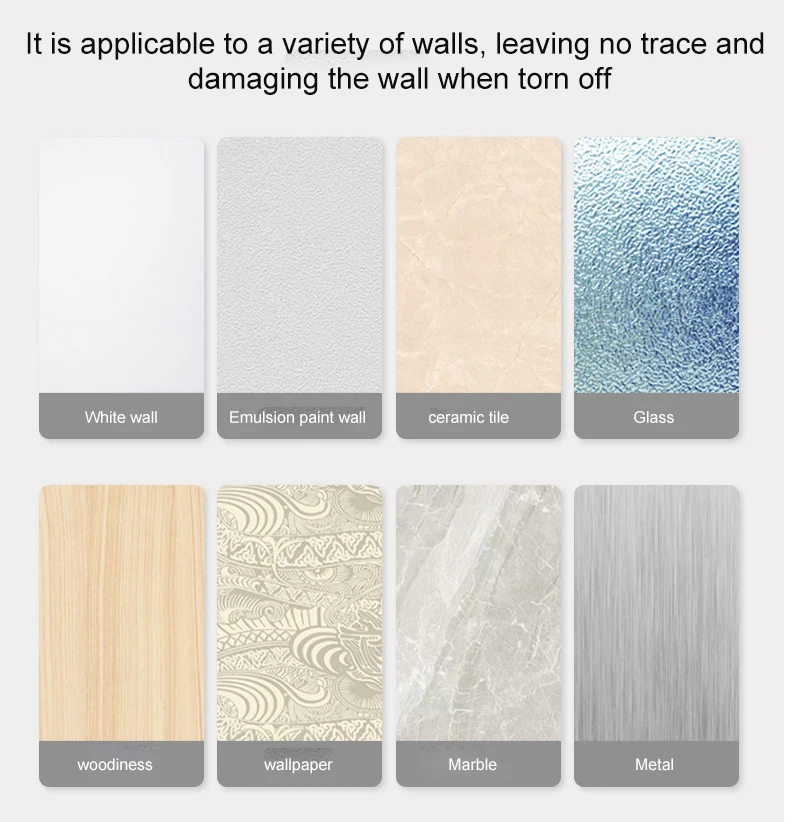 Adhesivo fuerte que no deja marcas, se adhiere firmemente a la pared, no se cae durante mucho tiempo y es más conveniente de llevar.