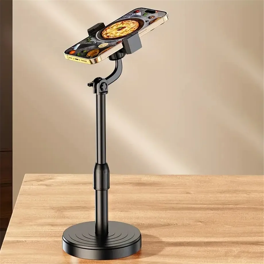 1.Función de ajuste: permite a los usuarios ajustar fácilmente la altura del soporte del teléfono móvil, ya sea subiendo o cayendo.Esta característica hace que la fotografía y la transmisión en vivo sean más convenientes.