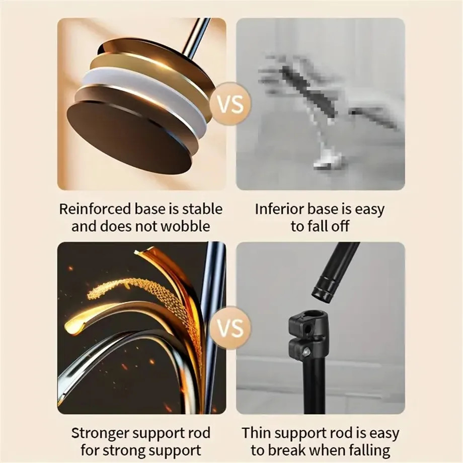 3.Multifunción: este soporte para teléfono móvil se puede utilizar no solo para fotografiar y transmitir en vivo, sino también como un soporte para teléfono móvil normal.Los usuarios también pueden utilizarlo cuando estudien o trabajan.No solo puede sostener el teléfono móvil de manera estable, sino que también puede ajustar el ángulo de visión apropiado.