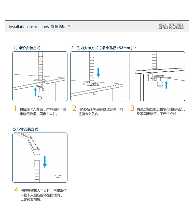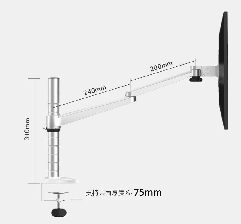 Base de abrazadera adecuada para un grosor de escritorio <=75mm