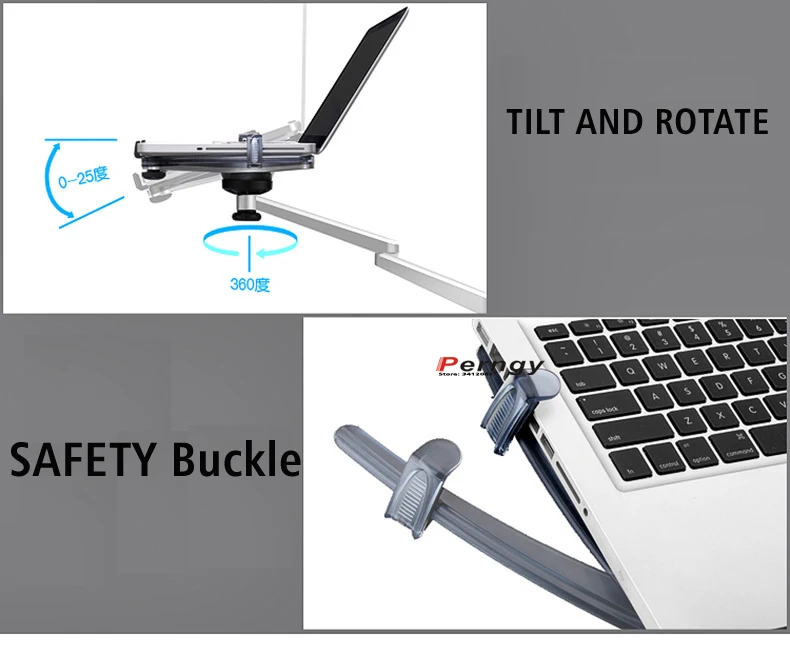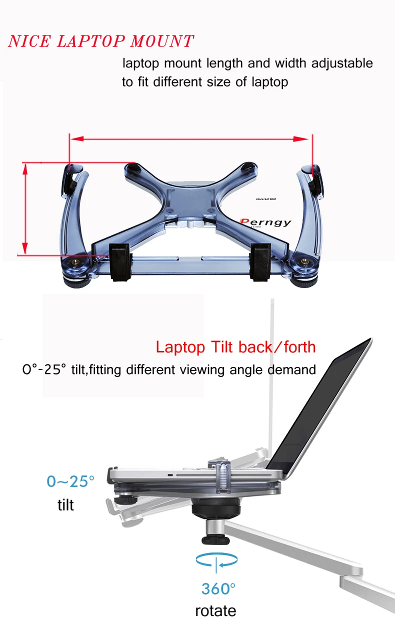 Inclinación de la bandeja del portátil hacia arriba/hacia abajo: 0 °/-25 °