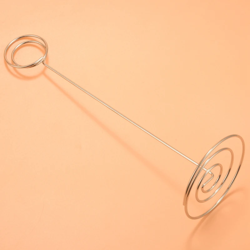 Resistente: Nuestro tarjetero de mesa es lo suficientemente alto y vertical como para contener fotos de 4x6 pulgadas. La amplia base en espiral y el fuerte clip en forma de círculo en la parte superior pueden mantener su foto o tarjeta de número de mesa más estable
