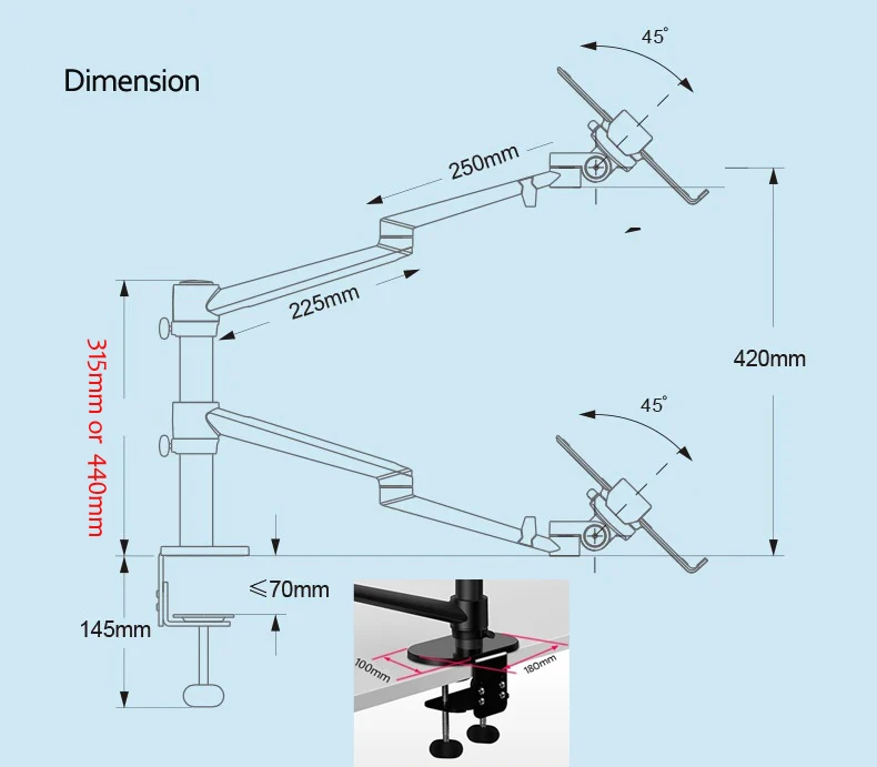 Comprar Soporte OL-10L para ordenador portátil, accesorio ergonómico de aluminio plateado, doble brazo, 10-17 pulgadas
