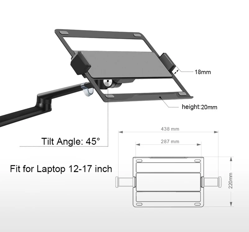 Comprar Soporte OL-10T de aluminio para ordenador portátil, base de ajuste de altura de escritorio Dual de 17-32 pulgadas y 12-17 pulgadas, brazo de montaje Triple de movimiento completo