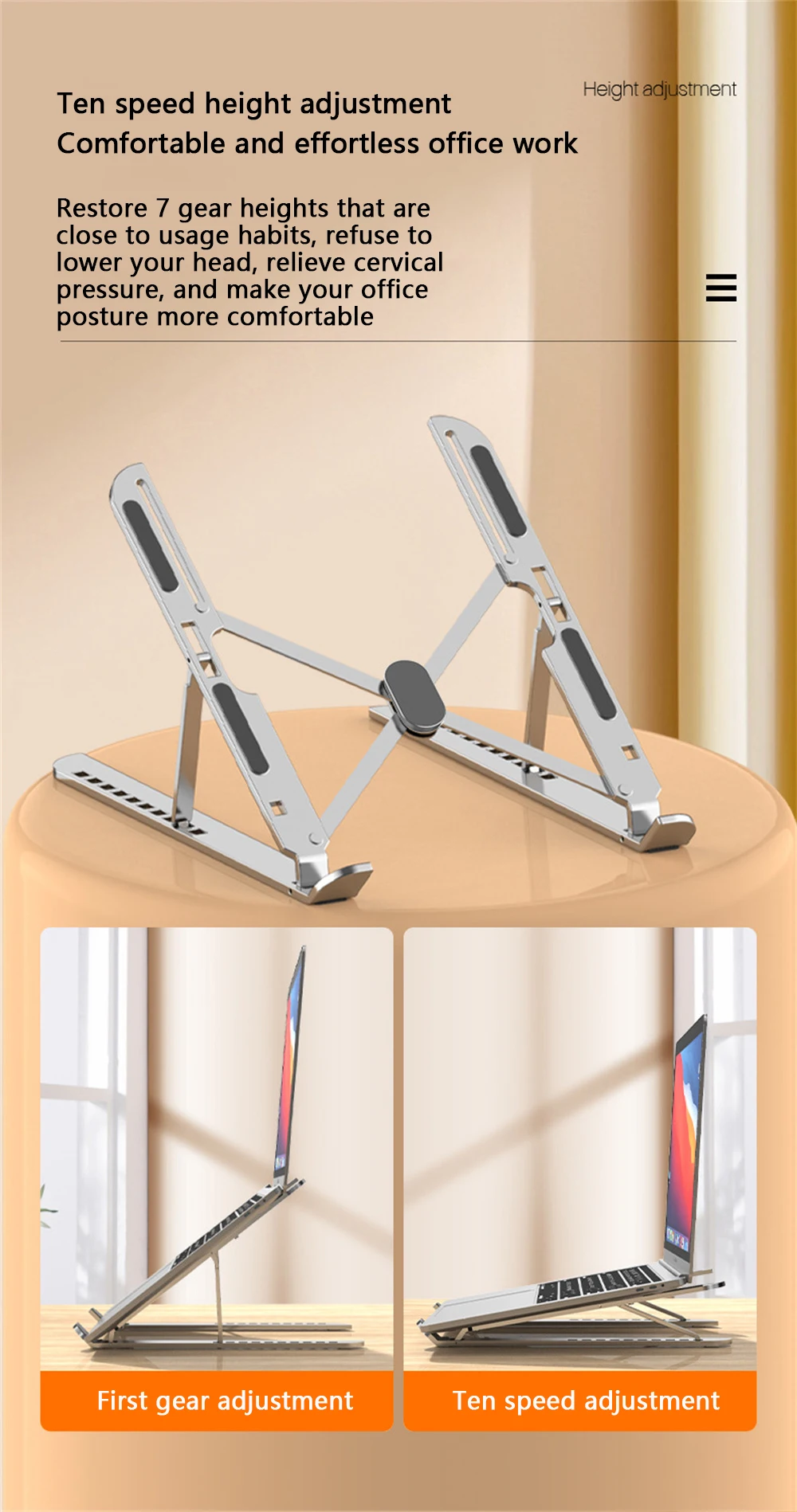 4. Ajuste del eje doble, ajuste del ángulo de altura, ajuste continuo, buscando una altura cómoda