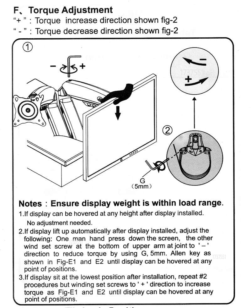 Carga: 2-9kg (tenga en cuenta que el peso del monitor debe estar dentro de este rango, o el resorte de gas no podría funcionar)