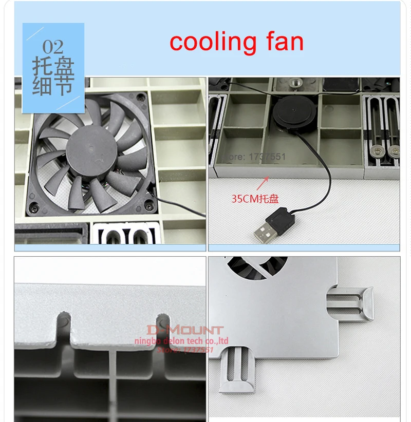 Bandeja para computadora portátil con tamaño de ventilador: 350x225 mm se puede extender hasta 410x275 mm