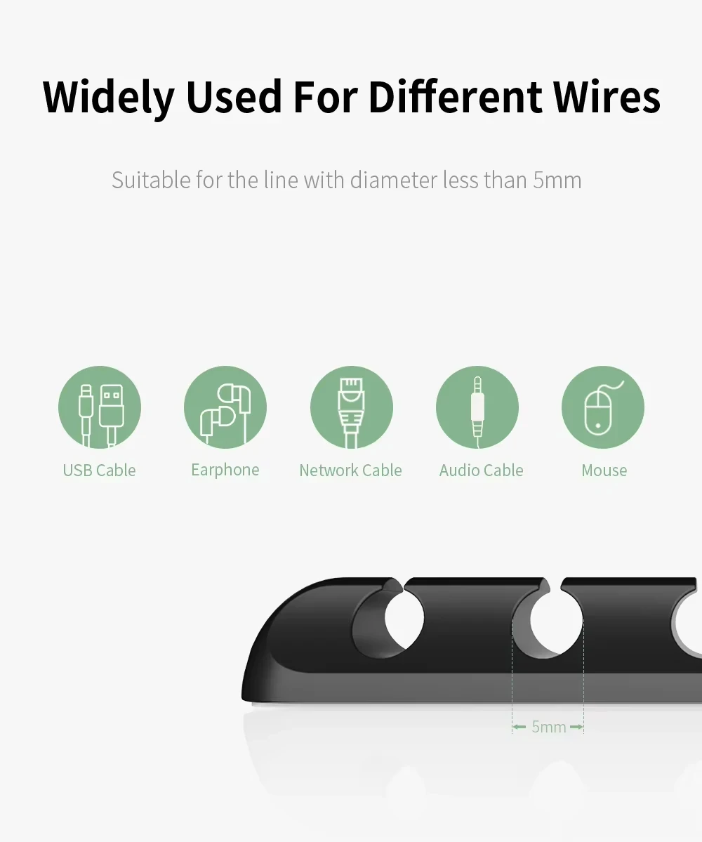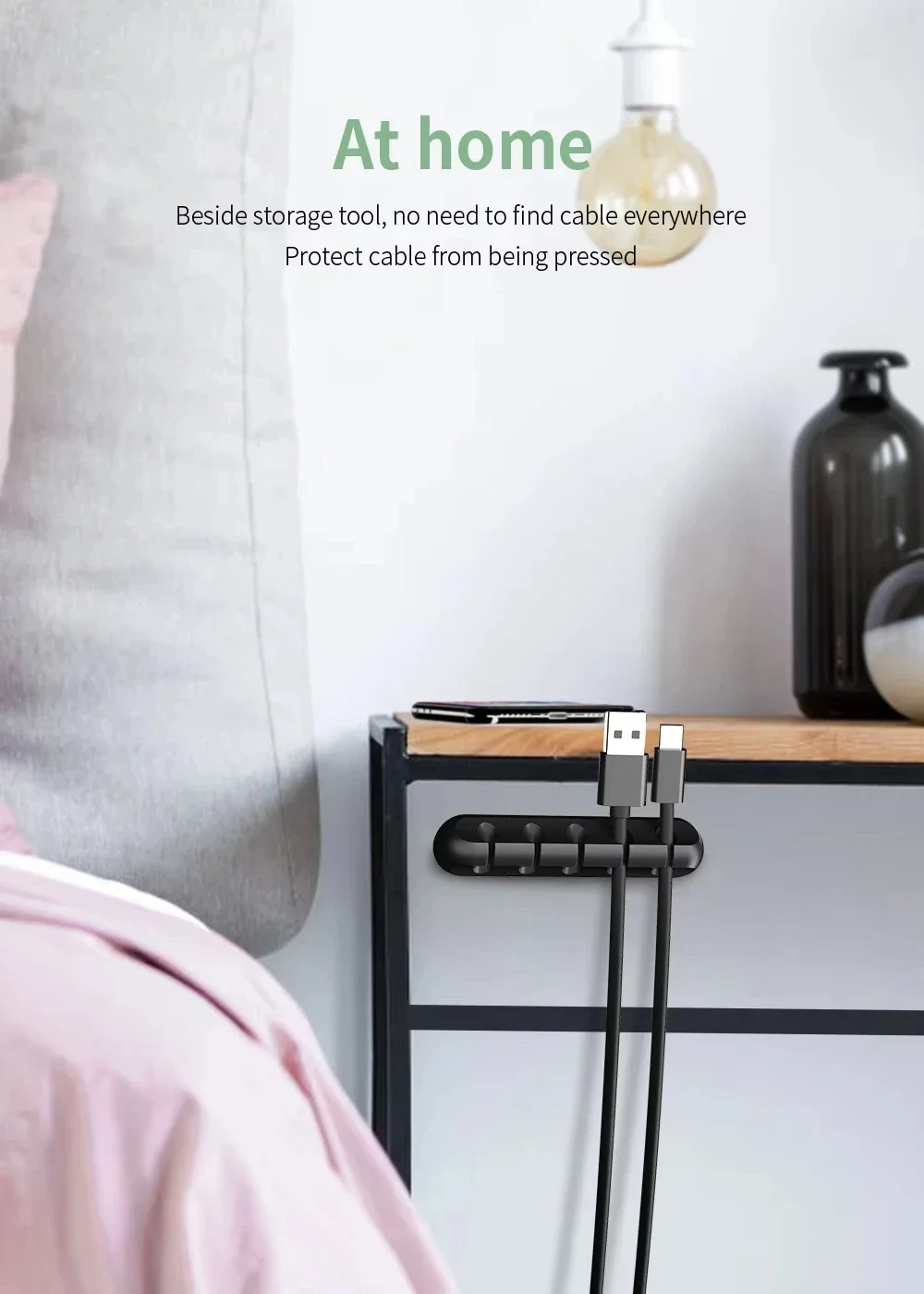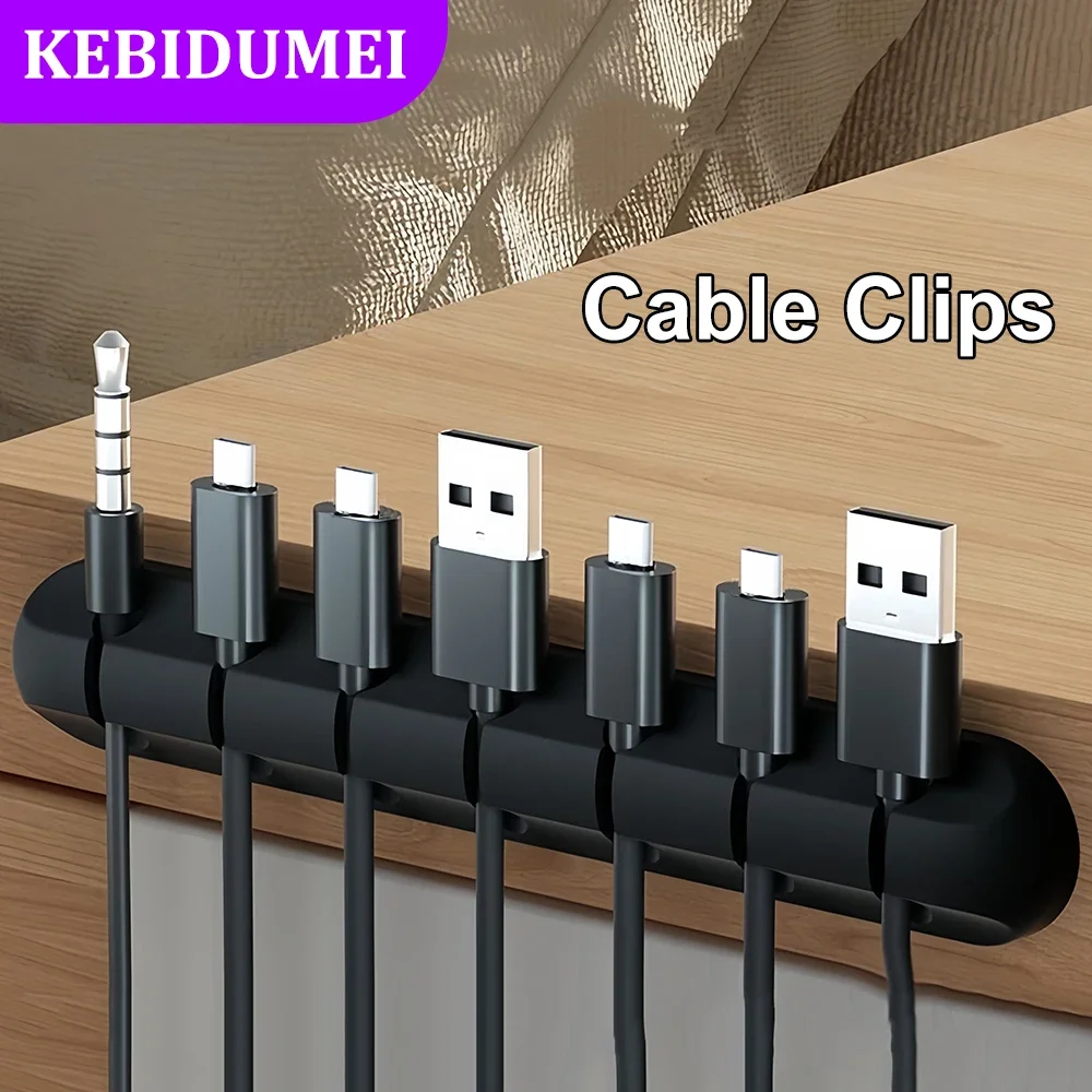 Soporte organizador de cables con Clip para cables, enrollador de cables USB de silicona, Clips de gestión, organizador ordenado de escritorio autoadhesivo, soporte para cables