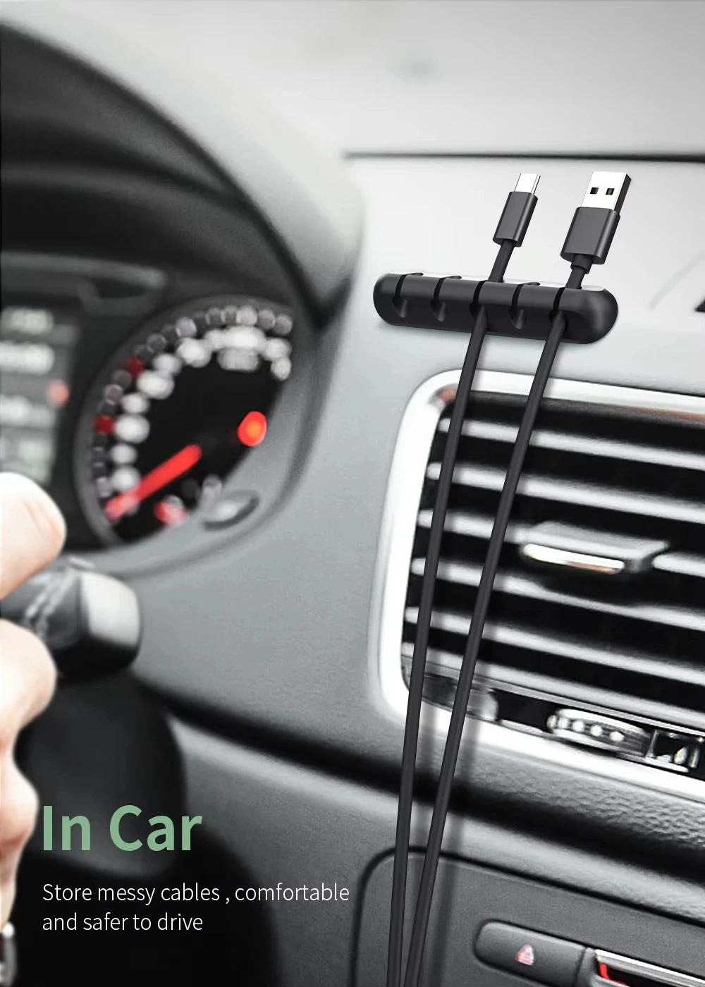 Comprar Soporte organizador de cables con Clip para cables, enrollador de cables USB de silicona, Clips de gestión, organizador ordenado de escritorio autoadhesivo, soporte para cables