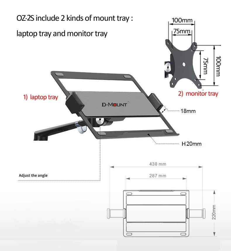 Comprar Soporte de OZ-2S de aluminio 2 en 1 para monitor, prensa de aire de 10 "0-8kg, 32", doble brazo, resorte de gas, para tableta y ordenador portátil