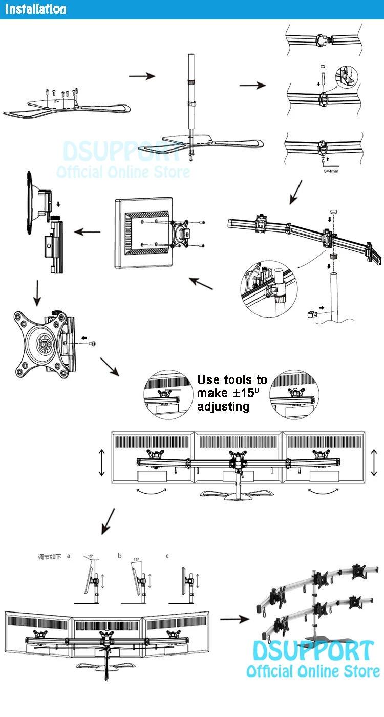 Comprar Soporte para pantalla LCD de 15-27 ", aleación de aluminio, 6 pantallas de TV, elevación libre, deslizamiento, movimiento completo, 6 monitores, MP260SL