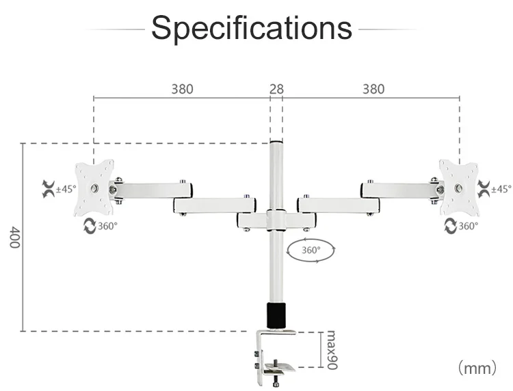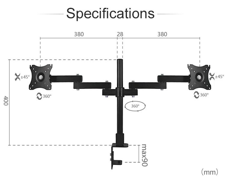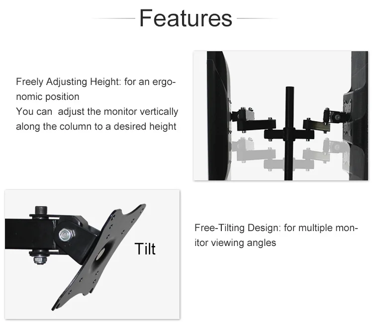 Comprar Soporte de pantalla totalmente dinámico de doble LCD de escritorio soporte de pantalla ajustable soporte de TV adecuado para dos pantallas de 14 "- 24", carga 8kg xd50