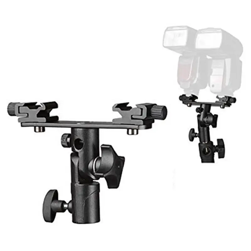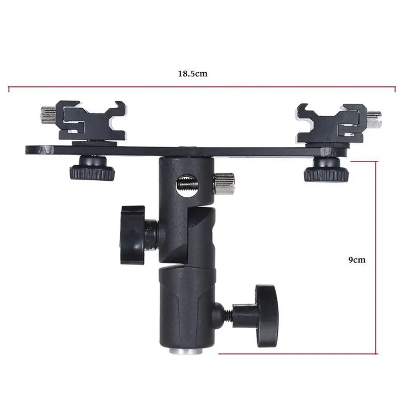 Este es un soporte de flash universal para uso en estudio. Adecuado para cualquier soporte de luz o trípode (tornillo de 1/4 "o tornillo de 3/8").