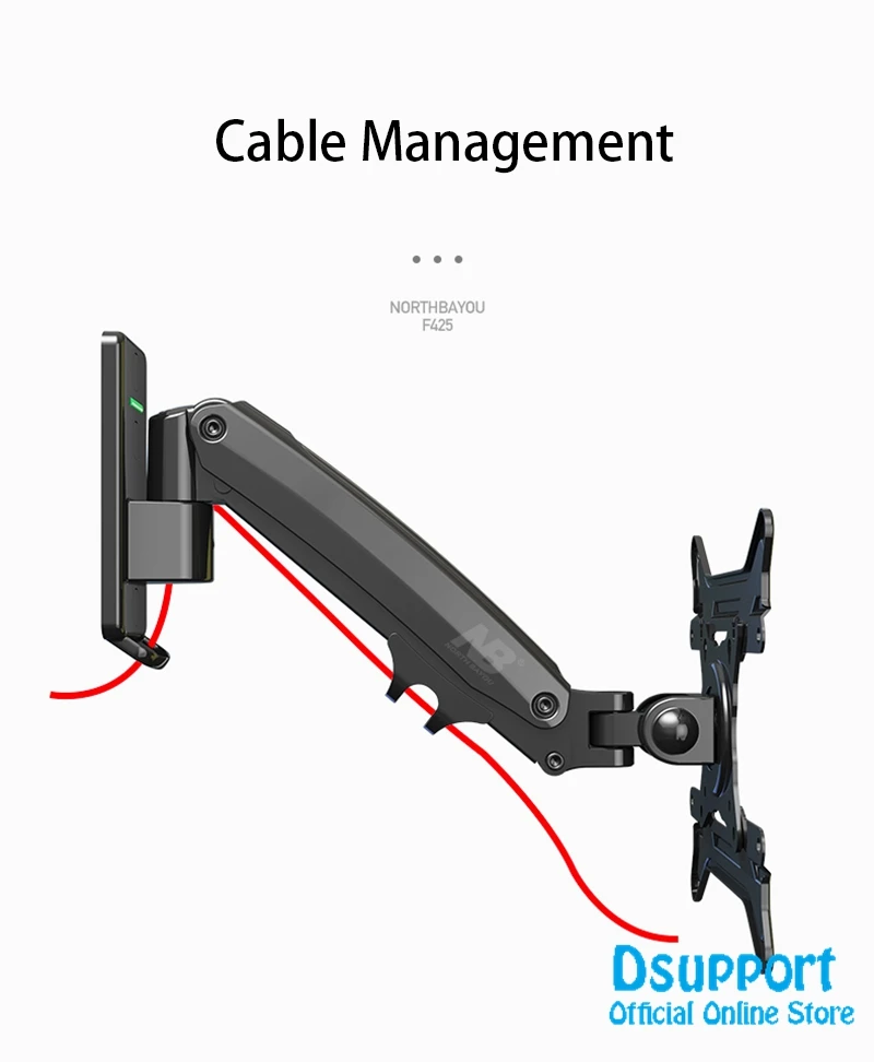 El soporte de pared de movimiento completo F425 es una extensión de un solo brazo fabricada en material de aleación de aluminio con el mejor acabado negro recubierto. Un indicador de nivel integrado le permite instalar una placa de pared sin ningún tipo de acople. La gestión de cables de diseño único proporciona un aspecto limpio y libre de desorden.