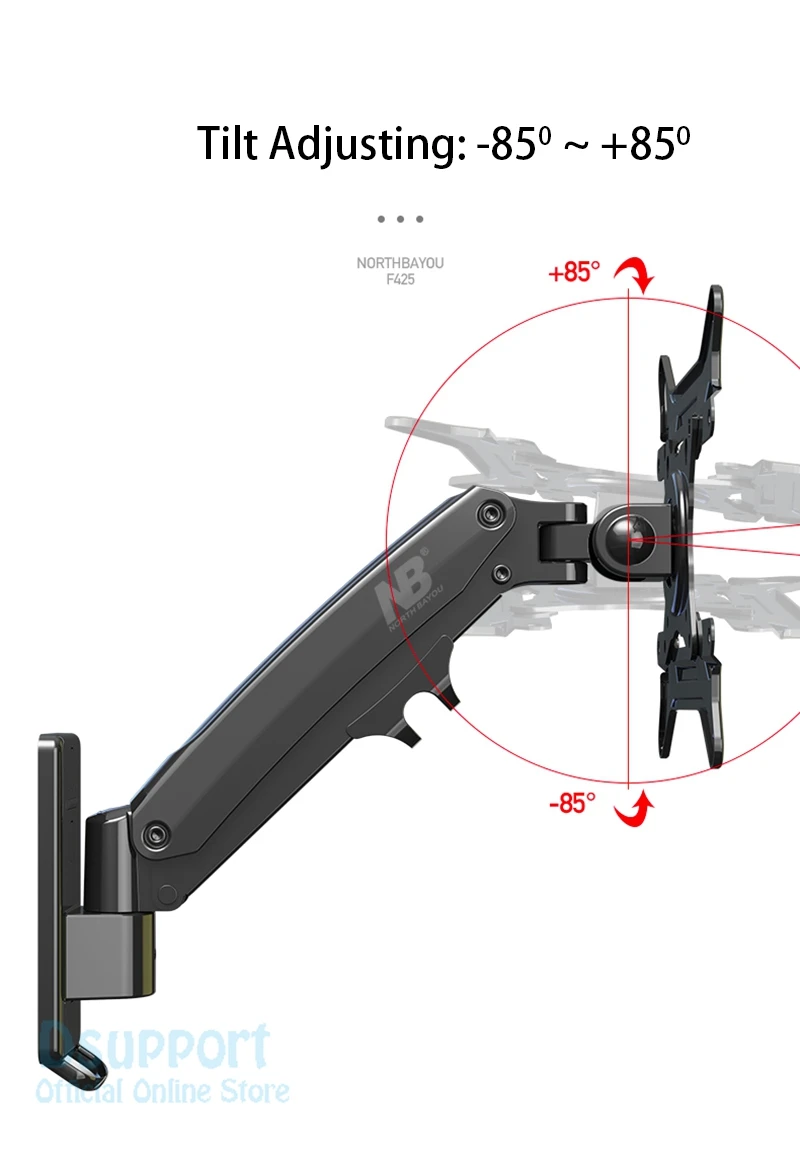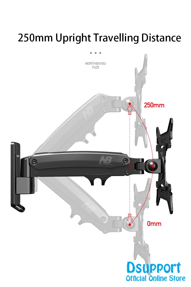 Nuevo soporte de montaje en pared de aluminio NB F425 con movimiento completo de 27-4 5 pulgadas para TV, brazo de resorte de Gas, carga de 3-13kg máx. VESA 200x200mm